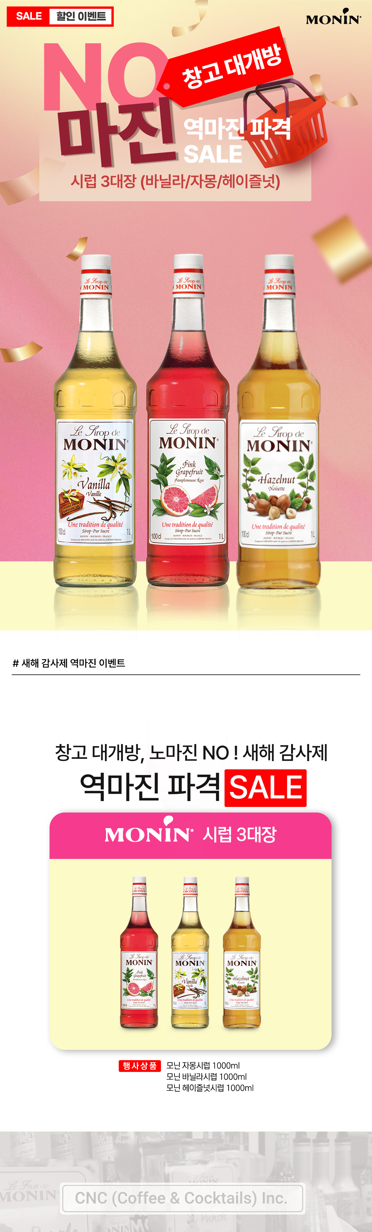 [할인적용된 세트] 모닌 자몽시럽 1L + 모닌 바닐라시럽 1L + 모닌 미니시럽 랜덤 2개 증정