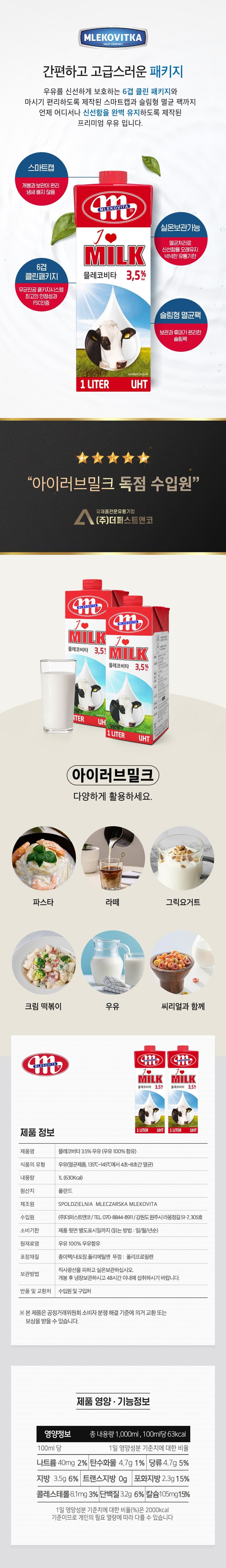 아이러브 밀크 멸균우유 1L 1박스 12...