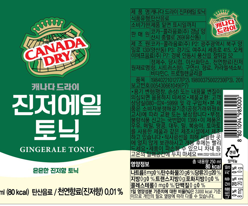 캐나다드라이 진저엘 250ml