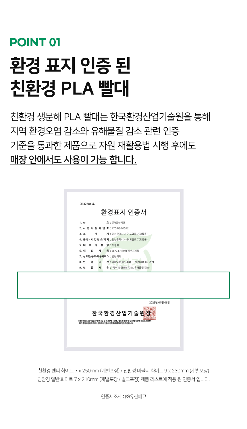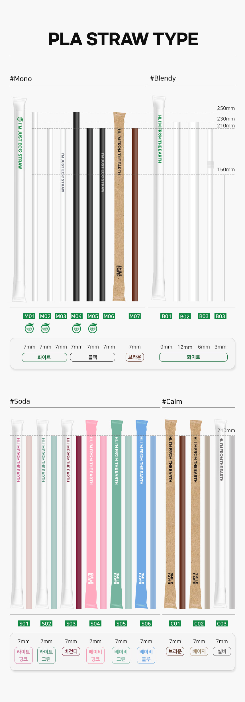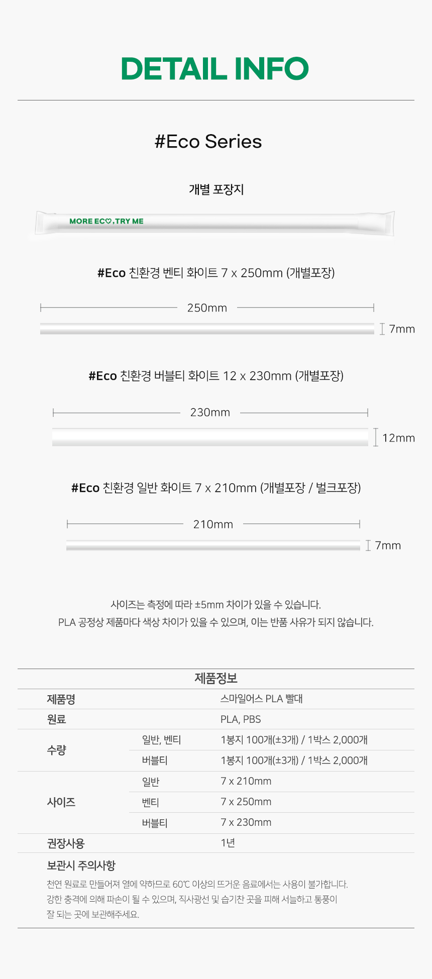 [업체발송] SSTPL022WH210 스마일어스 친환경 PLA 생분해 빨대 21cm 화이트 개별포장 5000개