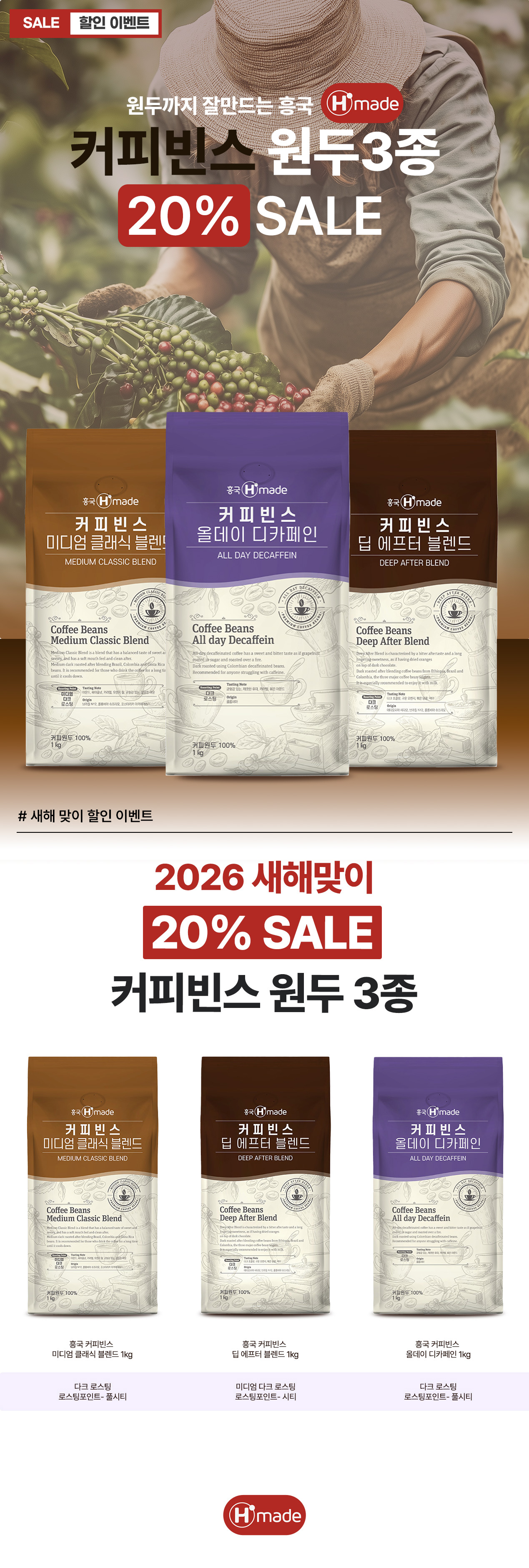 흥국 커피빈스 미디엄 클래식 블렌드 1kg