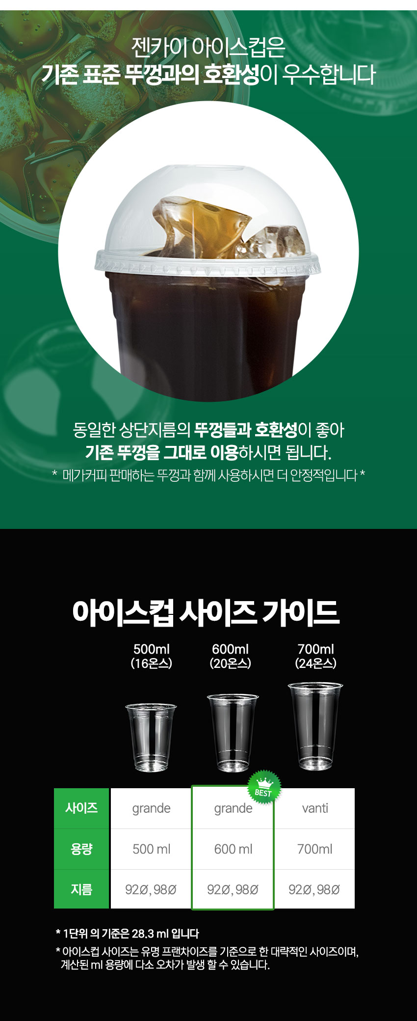 국내생산 98mm(16/20/24온스 겸용) 아이스컵 십자뚜껑 1줄 50개