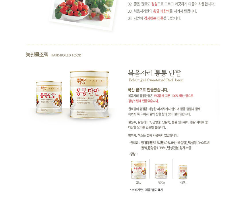 복음자리 통통단팥 850g 1박스 12개